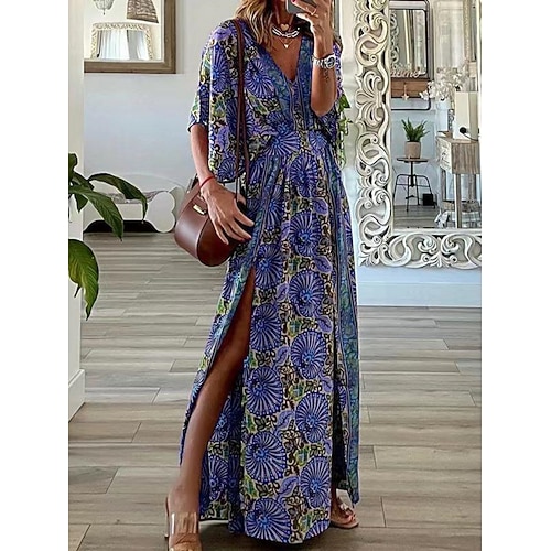 Per donna Abito maxi Abito a trapezio Vacanza Casual All'aperto Uscire Vestibilità comoda Floreale Grafico Mezza Manica Scollo a V Blu Giallo Rosso Viola Estate Primavera Autunno