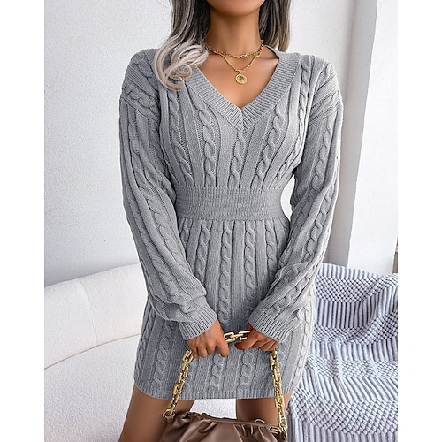 Per donna Mini Abito Abito in maglia Attillato Tubino Moda Moderno Vacanza Ferie Weekend Vestibilità regolare Semplice Manica Lunga Scollo a V Blu Nero Bianco Marrone Primavera Autunno