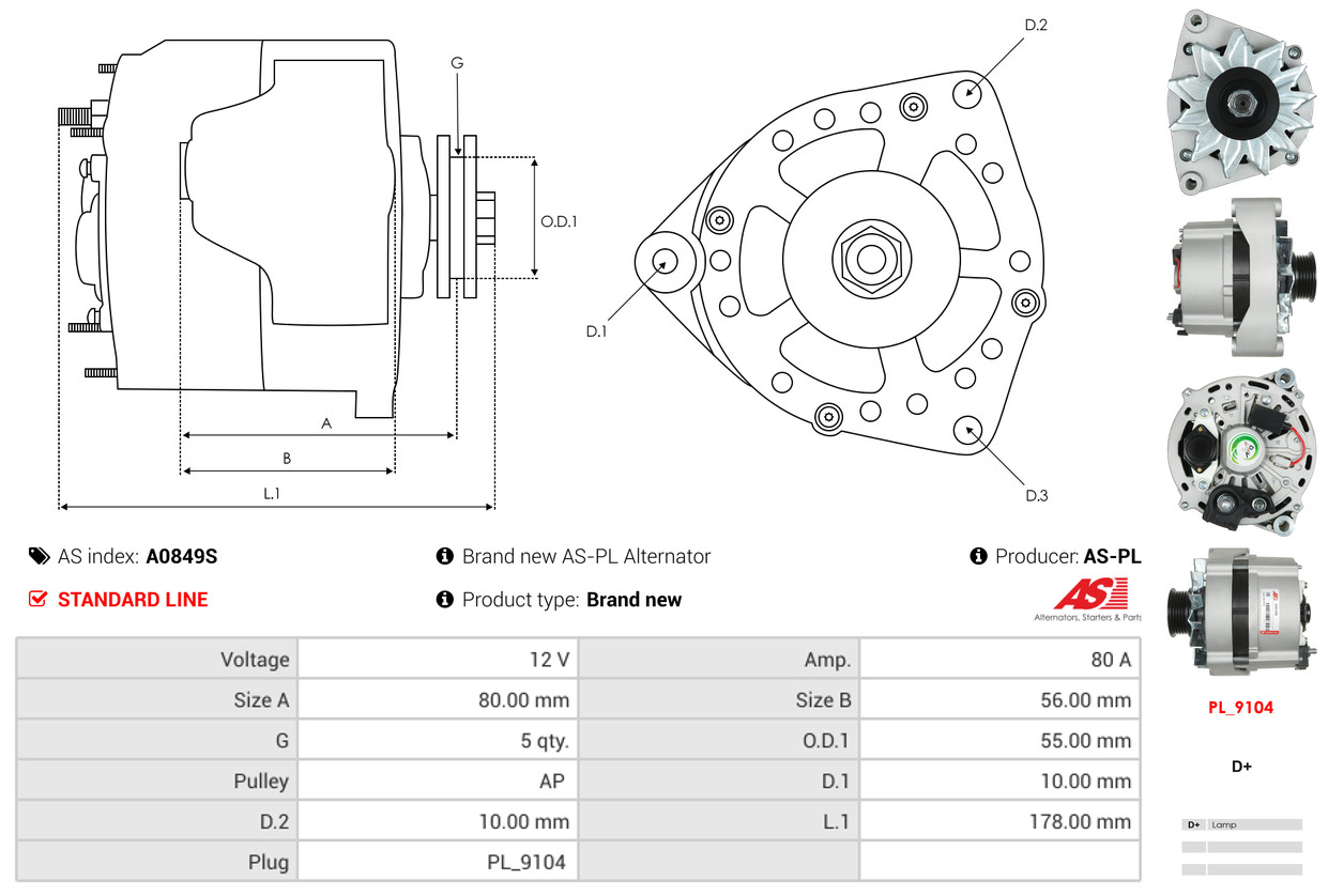 AS-PL Generator A0849S 12V 80A für SAAB MAZDA