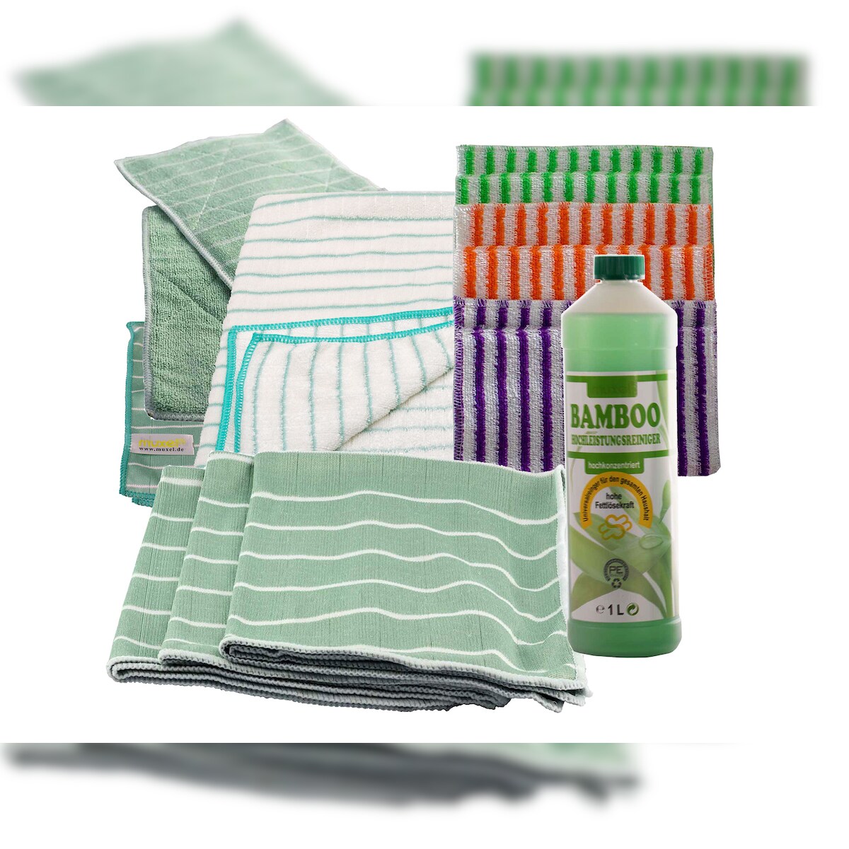 Muxel Bambus-Tuch-Mega-Set mit Hochleistungs Bambusreiniger Reiniger 1 Liter