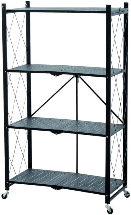 PROREGAL KLAP klappbares Regal mit Rollen | 4 Böden/Fächer | Belastbarkeit 200kg | HxBxT 127x72x34cm | Lagerregal Regalsystem Klappregal Schwarz