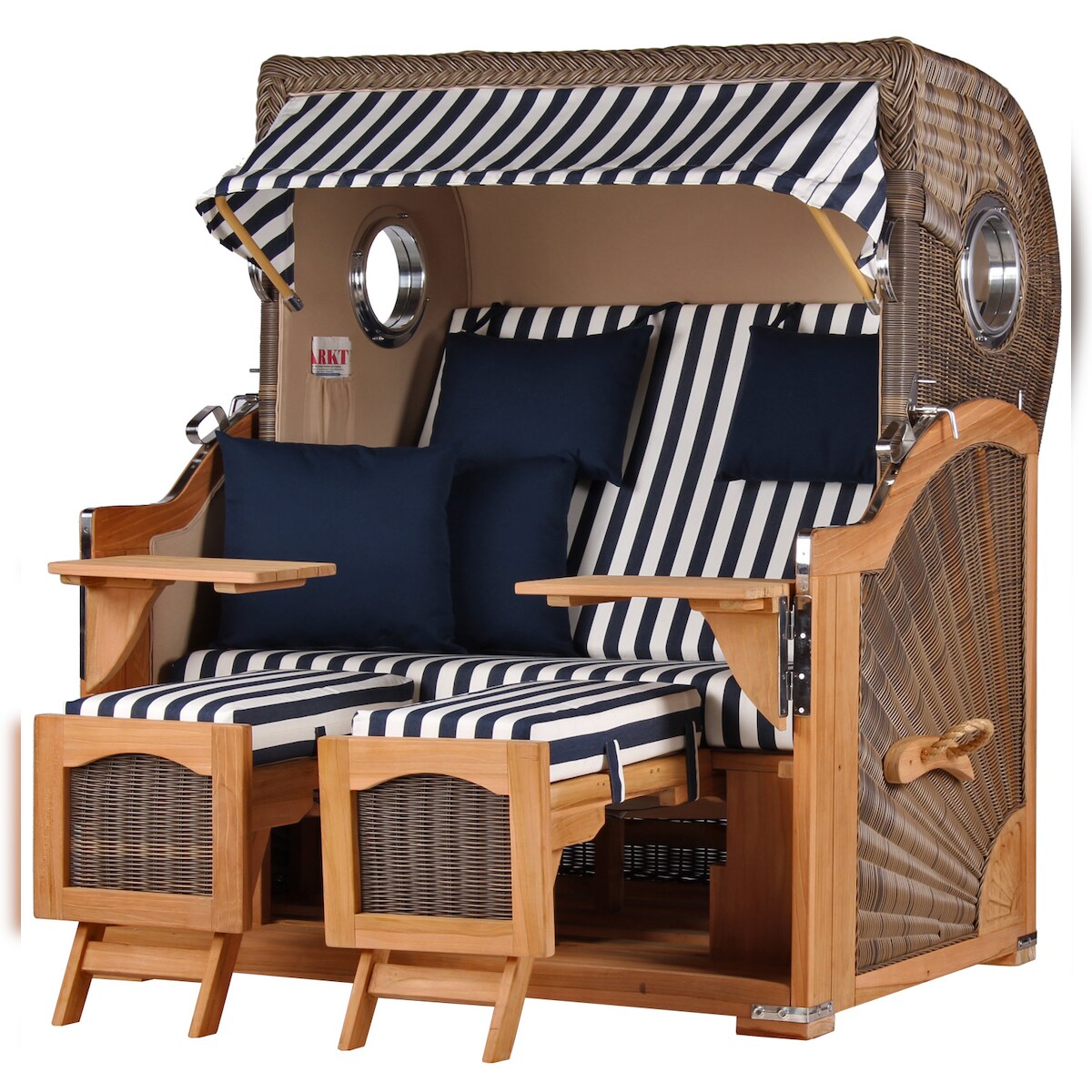 Mr. Deko Strandkorb - bene living - Ammersee Grande XL Teak Bullauge - PE grau - Modell 518 - 2,5-Sitzer inkl. Liftersystem