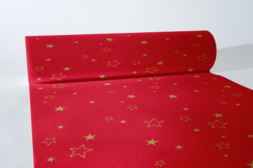 Sovie HORECA Weihnachtstischläufer Liam in Rot aus Linclass® Airlaid 40 cm x 24 m, 1 Stück - Sterne