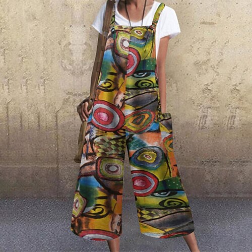 Per donna Salopette Attivo Floreale Senza Maniche Senza maniche Dritto Collo quadrato Tasca con tasca Vacanza Quotidiano Vestibilità comoda Rosa Arancione Cachi Estate