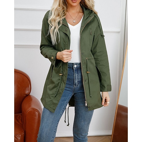 Per donna Cappotto Invernale Trench Caldo Confortevole Cerniera Tasca Casual Semplice Vacanza Abbigliamento quotidiano Uscire Weekend Lungo Con Cappuccio Vestibilità regolare Manica Lunga Capispalla