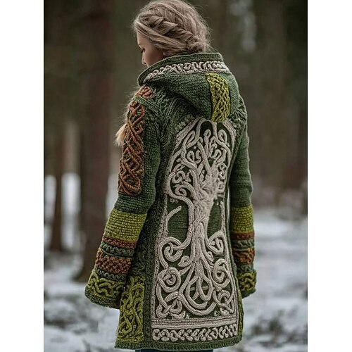 Per donna Cardigan Quotidiano Casual Grafico Geometrico A Coste Con Cappuccio Patchwork Tasca Bottoni Manica Lunga Top lunghi Maglia All'aperto Weekend Verde Autunno Inverno