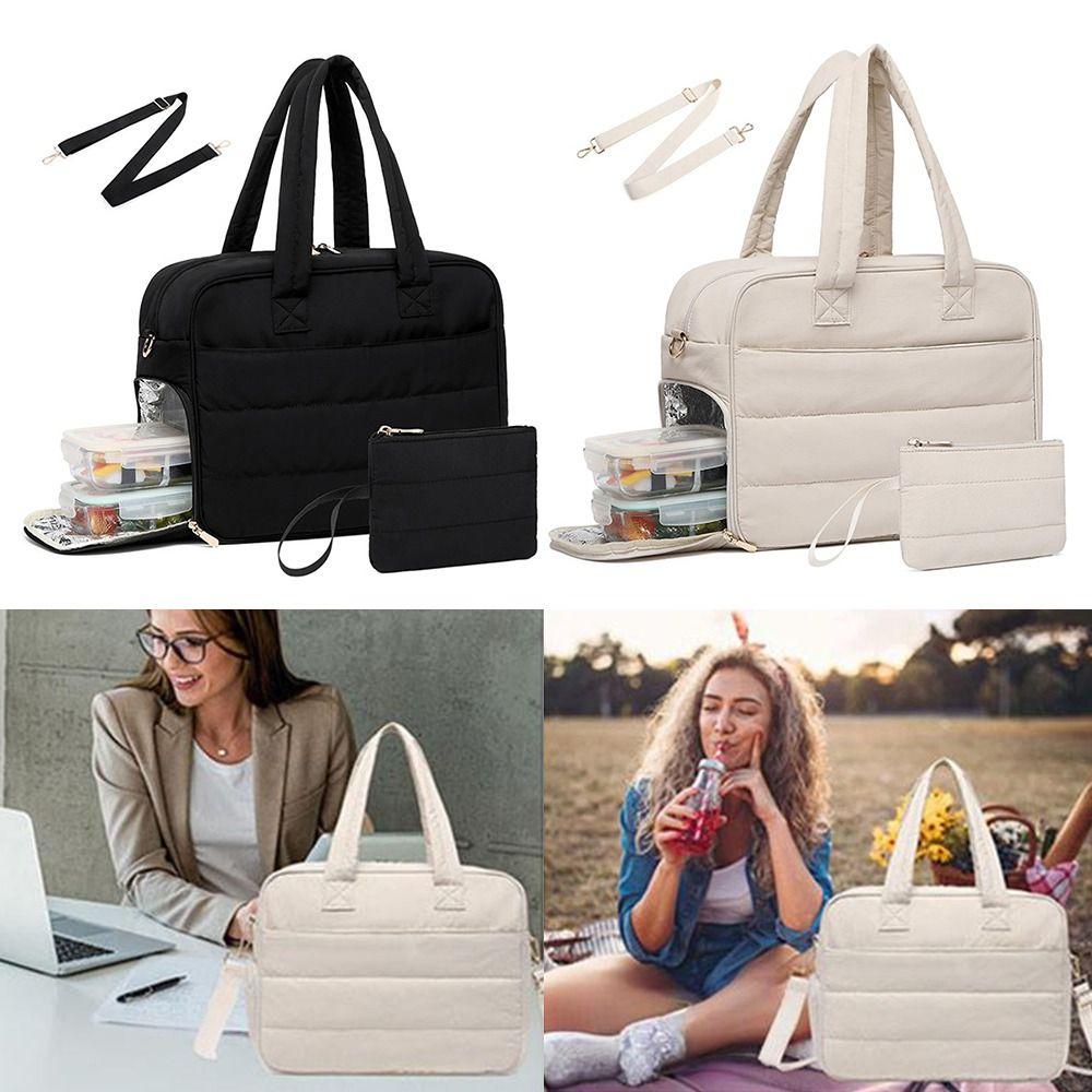3-in-1 Laptop Tote Bag met Compartiment Puffer Gewatteerde Tas Nieuwe Geïsoleerde Lunchtas zwart