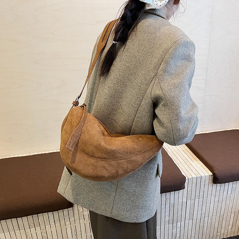 Dames Retro Crossbody Tas met Grote Capaciteit - 2025 Herfst/Winter Modieus Dumpling Design beige