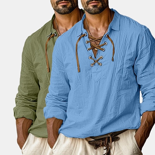 Per uomo Camicia Camicia di lino Stile vichingo Camicia popover Camicia Estiva Abbigliamento da spiaggia Tinta unica Vacanza Streetwear Bianco Arancio Bianco Verde Verde arancio Bianco Bianco