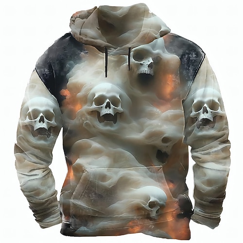 Per uomo Teschio 3D Felpa con Cappuccio Felpa Punk Esagerato Gotico Casual Manica Lunga Girocollo Con Cappuccio Club Abbigliamento casual alla moda Verde chiaro Blu Verde Grigio Coulisse Autunno