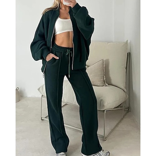 Per donna Moda Streetwear Tuta Set di Pantaloni Bolero Top Manica Lunga Collo alla coreana Semplice Cerniera Casuale Quotidiano All'aperto Verde militare Verde scuro Marrone Estate Vestibilit