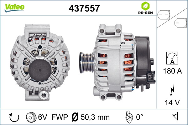 VALEO Generator REMANUFACTURED PREMIUM 437557 14V 180A für ALPINA BMW (BRILLIANCE) 7525376 12317525376