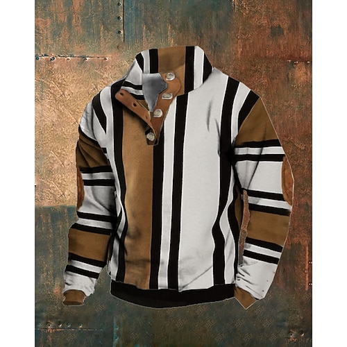 Per uomo Grafico Blocco di colori Felpa Moda Streetwear Casual Collo alla coreana Uscire Marrone chiaro Marrone Arcobaleno Bottoni Stampato Primavera Autunno progettista S M L XL 2XL 3XL