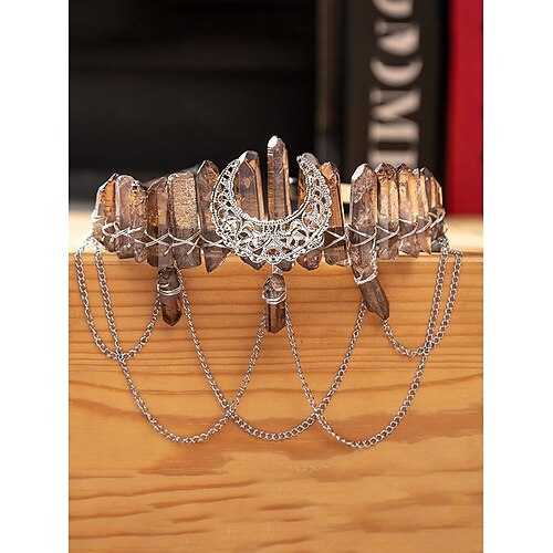 Copricapo di cristallo boho per Mardi Gras da donna - cerchietto in quarzo mistico e luna in vari colori - perfetto per costumi di carnevale e di maschera
