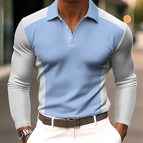 Per uomo Blocco di colori Polo Manica Lunga Magliette polo Bavero Business Casual All'aperto Athleisure Abbigliamento quotidiano Bottoni Primavera Autunno Blu Rosso Blu marino