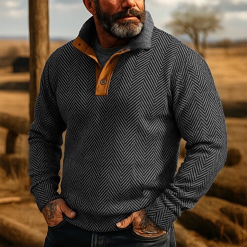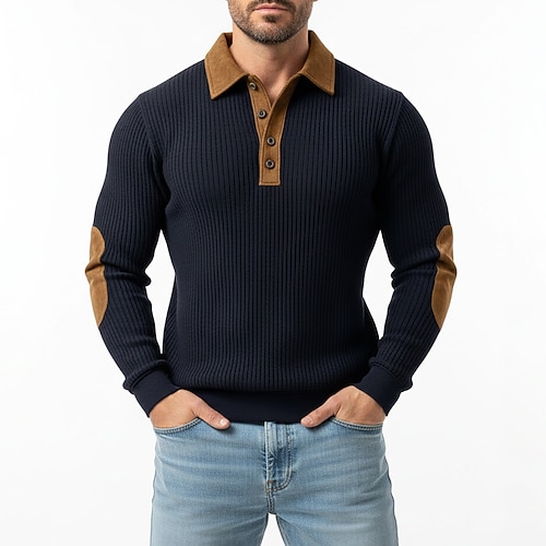 Per uomo Maglia Maglione Felpa con cappuccio abbottonata Maglia a coste Verde militare Borgogna Blu marino Cachi Colletto Polo Semplice Patchwork Blocco di colore Testurizzato Casuale Quotidiano
