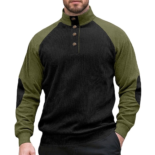 Per uomo Maglia Velluto a coste Felpa con cappuccio Maglione Felpa con cappuccio abbottonata Aalbicocca Cachi chiaro Nero Verde militare Borgogna Colletto Mao Semplice Patchwork Sport Outdoor