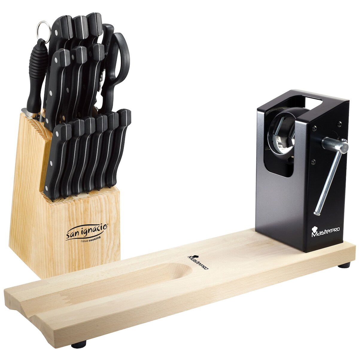 Bergner - Schinkenständer-Set Masterpro + Messer-Set mit 15 Teilen aus Edelstahl