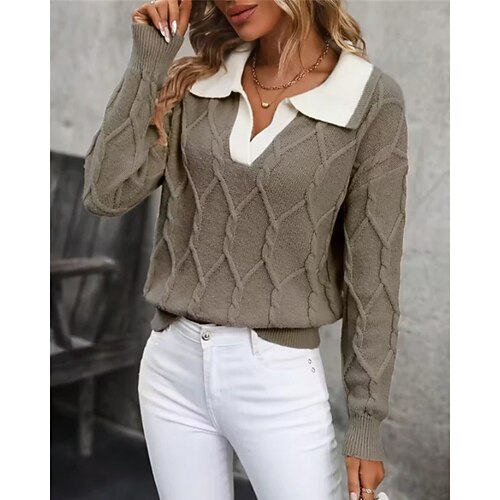 Per donna Felpa Maglione Elegante Casual Colore Puro A Coste Colletto a Camicia Lavorato a maglia Manica Lunga Top Regolari Maglia All'aperto Quotidiano Weekend Rosa intenso Nero Autunno Inverno