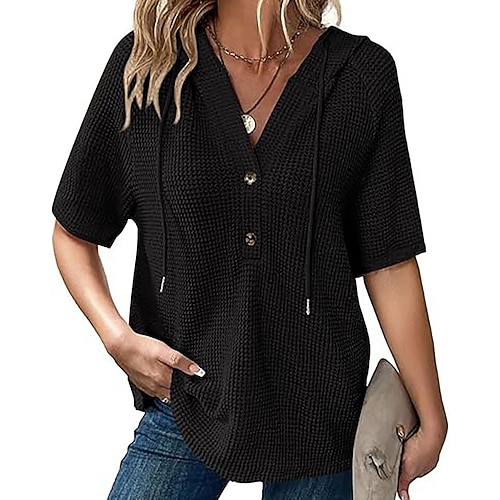 Per donna Camicia Blusa Semplice Elegante Classico Manica Corta Con Cappuccio Top Regolari Quotidiano Ferie Uscire Patchwork Bottoni Nero Bianco Rosa Rosso Blu marino Estate Primavera
