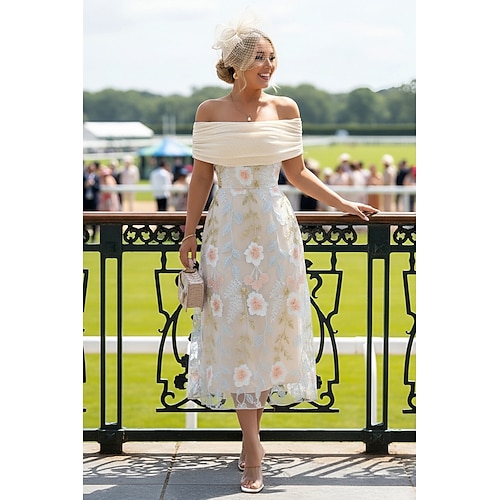 Linea ad A Lunghezza alla caviglia Abito Derby Elegante Vintage Senza Maniche Senza Spalle Derby del Kentucky con Fiore ricamato Ricamo