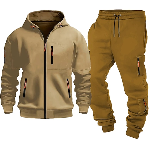 Per uomo Set coordinati Nero Felpa con Cappuccio Felpe con cappuccio Pantaloni da tuta Joggers Pantaloni Set Manica Lunga Con Cappuccio All'aperto Vacanza Tinta unica Con zip 2 Pezzi Poliestere