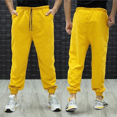Per uomo Pantaloni da tuta Joggers Pantaloni Pantaloni in velluto a coste Coulisse Tasca Elastico in vita Semplice Comodità Traspirante Lunghezza intera All'aperto Quotidiano Ferie Vacanza Moda Nero
