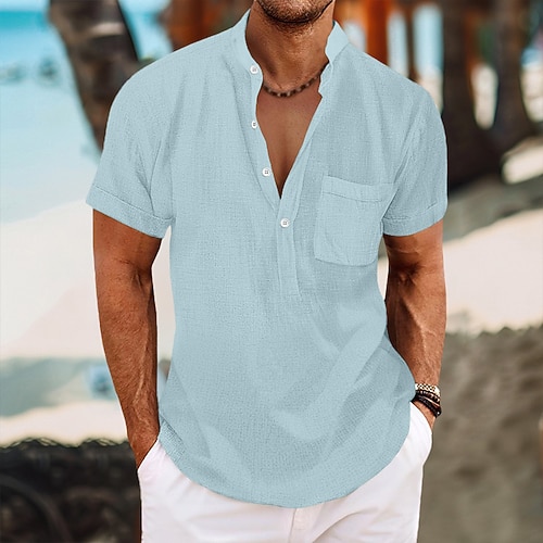 Per uomo Camicia Camicia con colletto cinese Camicia con colletto alla coreana Camicia casual Camicia di cotone Semplice Vacanza Streetwear Azzurro cielo Grigio scuro Beige Mezza Manica Colletto alla