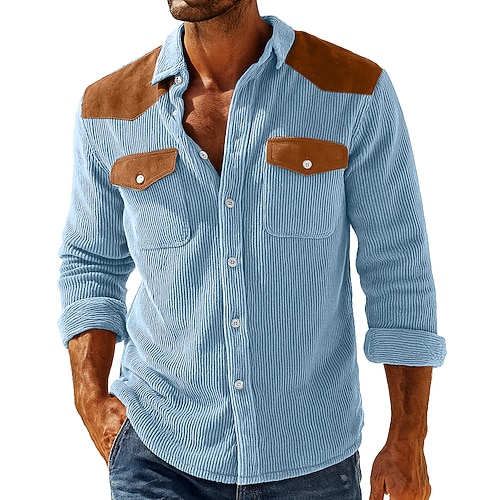Per uomo Camicia Maglia a coste Camicia casual Camicia con colletto alla coreana Camicia con Bottoni Blu Blu marino Kaki Grigio Manica Lunga Semplice Colletto Casuale Quotidiano Patchwork