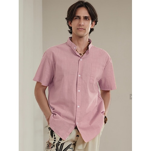 10% Lino Tasca Frontale Per uomo Camicia di lino Camicia casual Nero Bianco Giallo Manica Corta Semplice Henley Primavera Estate Vacanza Camicia hawaiana Abbigliamento