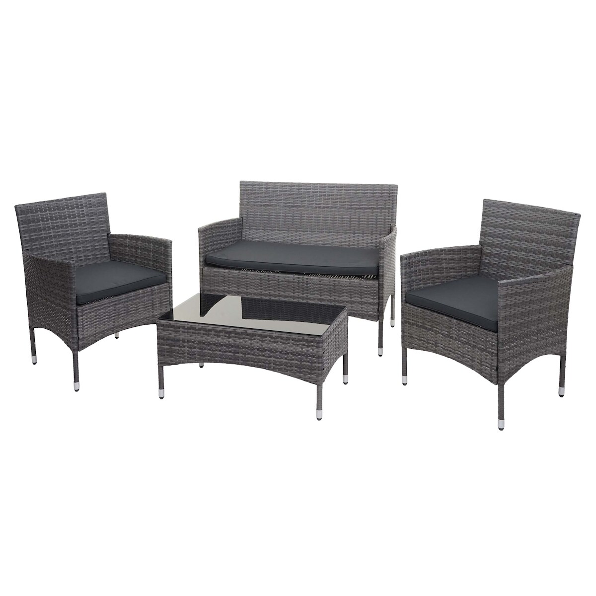 Mendler Poly-Rattan Garnitur HWC-F55, Balkon-/Garten-/Lounge-Set Sofa Sitzgruppe ~ grau, Kissen dunkelgrau
