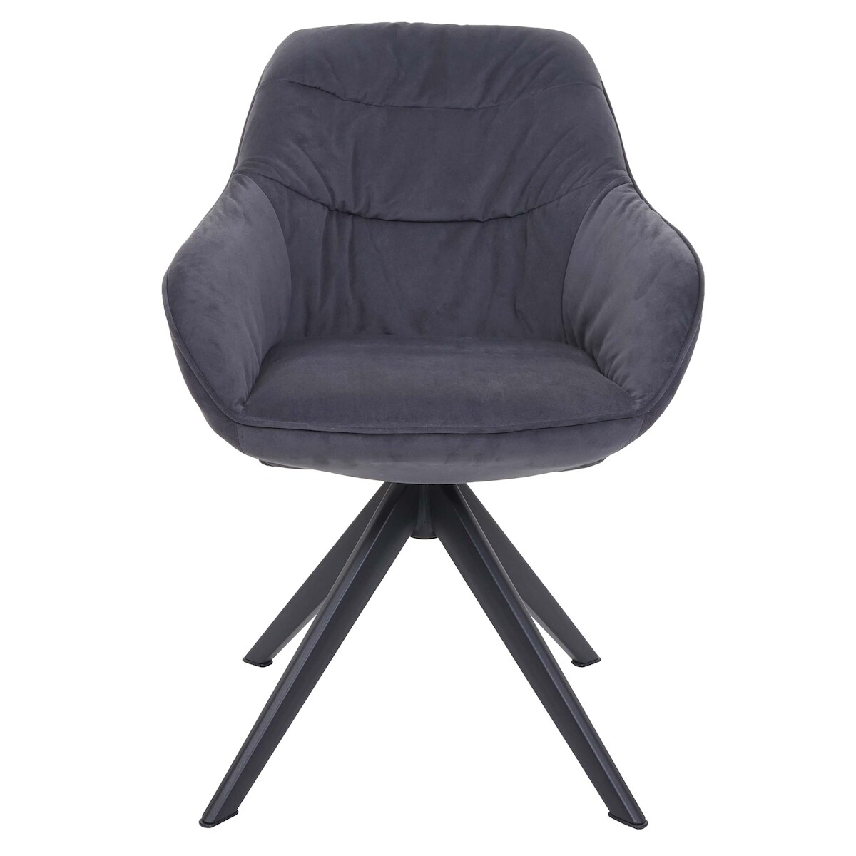 Mendler Esszimmerstuhl HWC-K28, Küchenstuhl Polsterstuhl Stuhl mit Armlehne, drehbar, Metall ~ Stoff/Textil grau