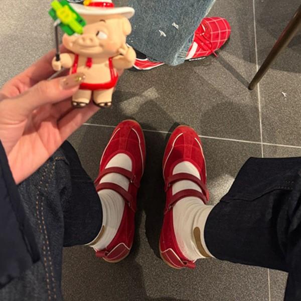 Cowhide version~ Genuine leather niche ballet fashion training shoes double strip sports style Mary Jane women's shoes flat single shoes women cm blue