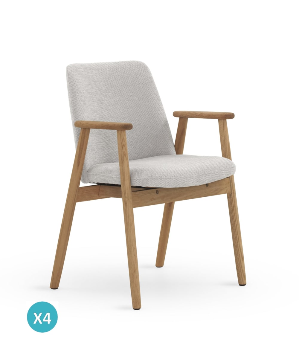 Set di 4 poltrone in legno di rovere naturale rivestite in bianco