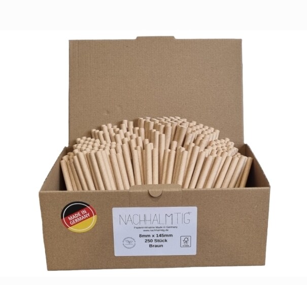 Trinkhalme Strohhalme Papier 8mm x 145mm braun kurz "CAIPI" 250 Stück MADE IN GERMANY