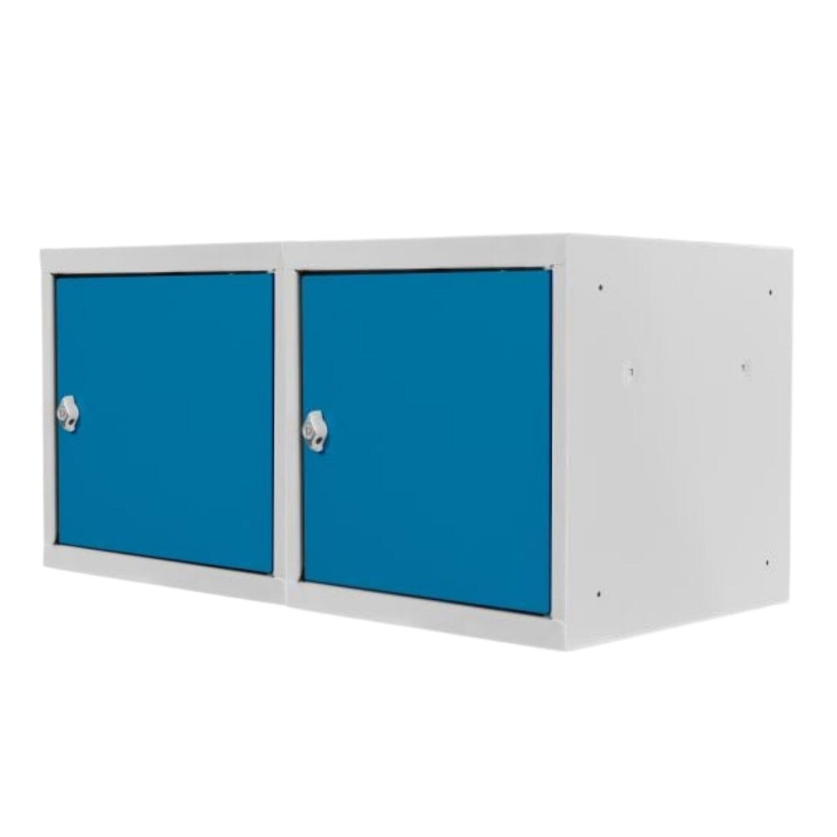 Proregal Mega Deal | 2x Schließfachwürfel Blocky mit Drehriegelschloss für Vorhängeschloss | HxBxT 40x40x40cm | Lichtgrau/Lichtblau