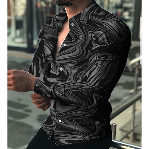 Per uomo Sfumatura Motivo Geometrico Geometria Camicia Camicia con Bottoni Manica Lunga Moda Streetwear Designer All'aperto Casuale Quotidiano Estate Primavera Autunno Collo alla coreana Stampato