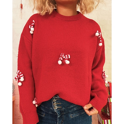 Per donna Felpa Maglione Pom Pom regalo di Natale Carino Animale A Coste Girocollo Lavorato a maglia Manica Lunga Top Regolari Maglia Natale All'aperto Uscire Bianco Rosso Autunno Inverno