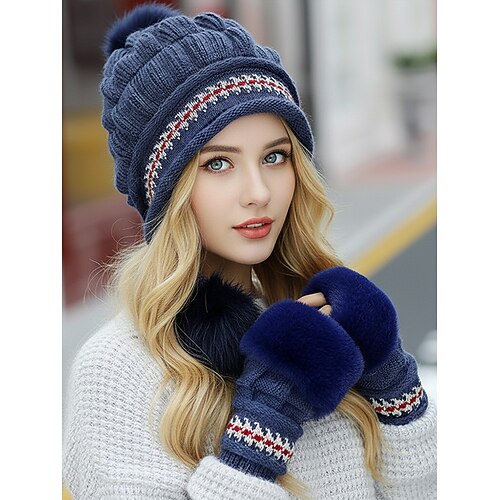 Set di cappello e guanti natalizi in maglia da donna, disponibile in diversi colori, comodo ed elegante, perfetto per le attività invernali all'aperto e come regalo per le feste