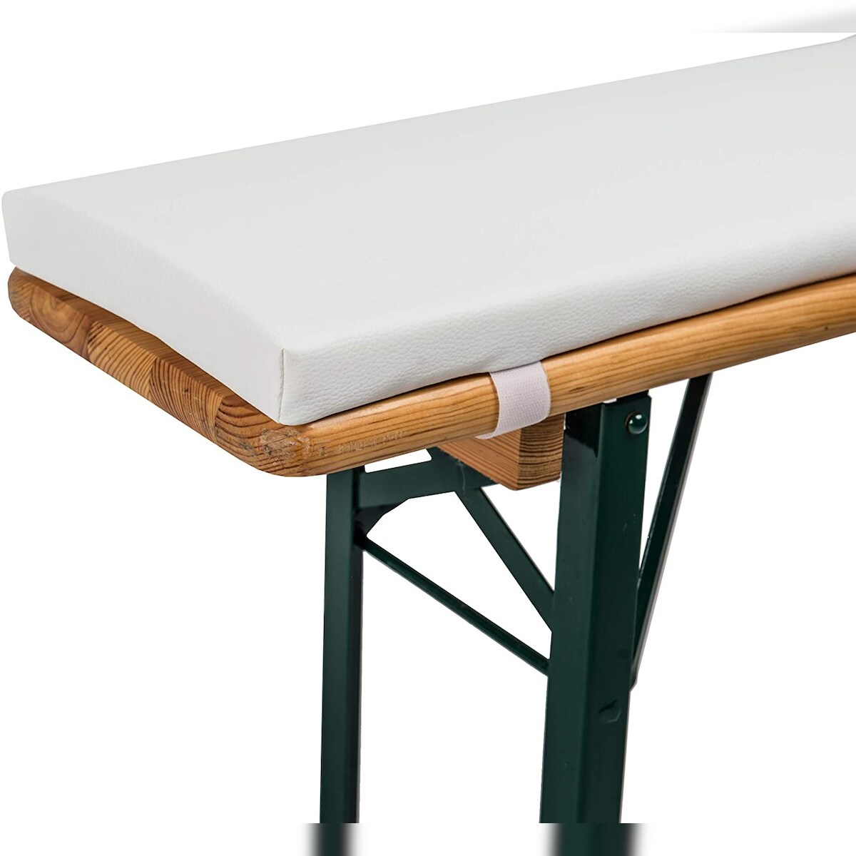 TexDeko Bierbankauflage gepolstert 220x25x4cm XL Bankauflage waschbar mit Reißverschluss zum selber aufziehen (Weiß Kunstleder)