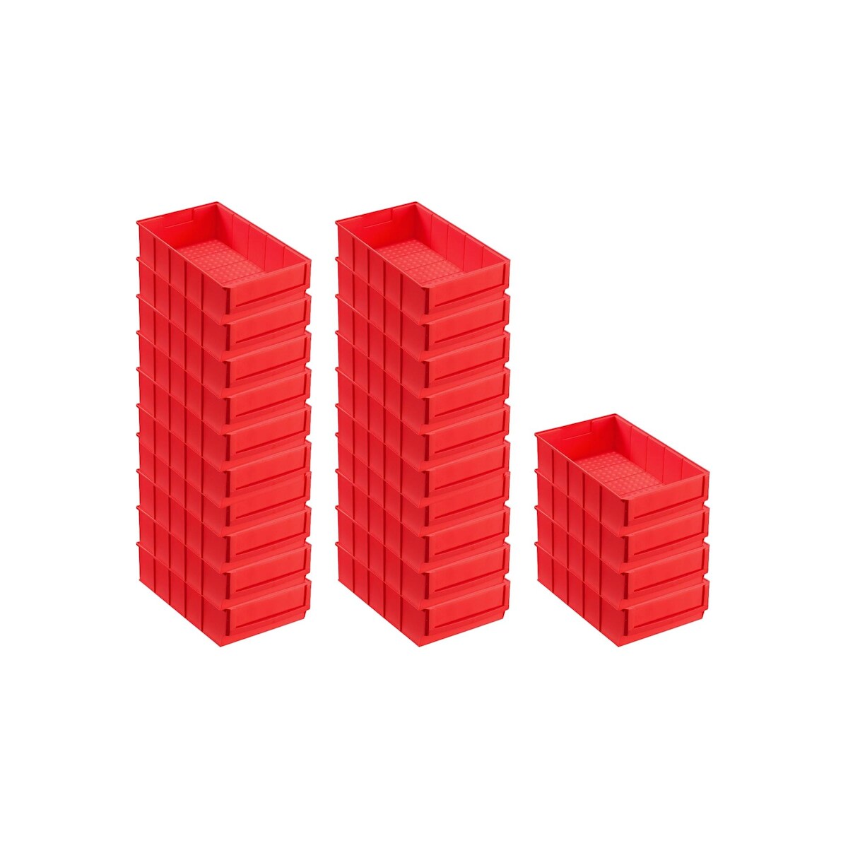 PROREGAL 24x Rote Industriebox 300 B | HxBxT 8,1x18,3x30cm | 3,4 Liter | Sichtlagerkasten, Sortimentskasten, Sortimentsbox, Kleinteilebox