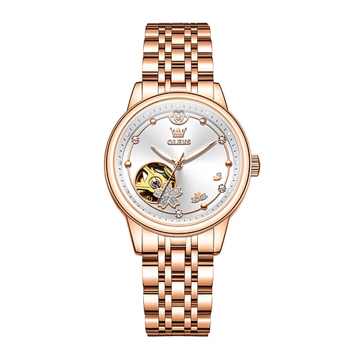 OLEVS Da donna Orologio meccanico Lusso Grande quadrante Strass Affari Scheletro cavo Luminoso Sub e immersioni Impermeabile Pelle Cinturino in acciaio inossidabile Guarda