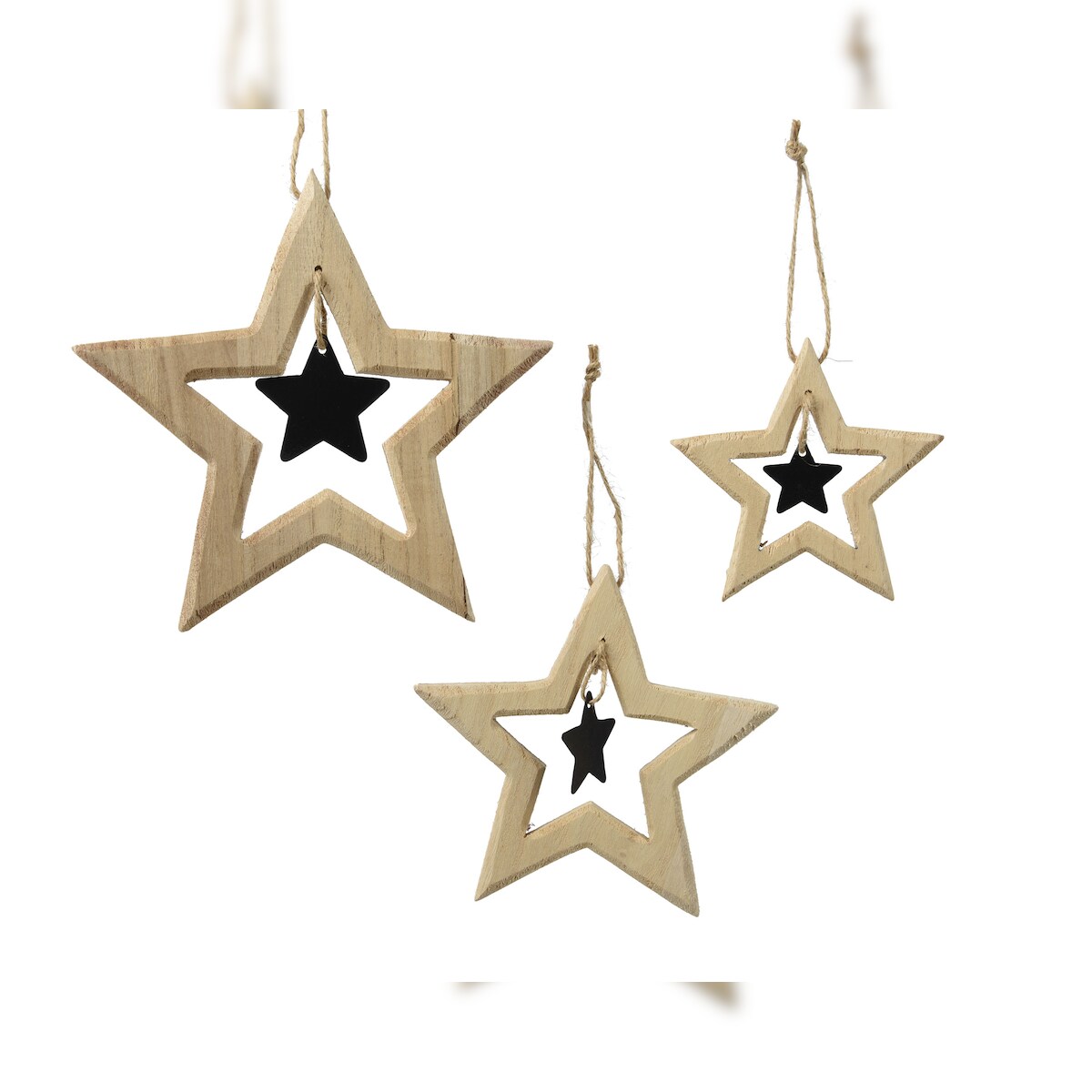 3x Christbaumschmuck Holz 11-19cm Stern Figur Weihnachtsbaum Anhänger Weihnachten Weihnachtsbaumschmuck Christbaumanhänger Sterne Sternchen Set Natur
