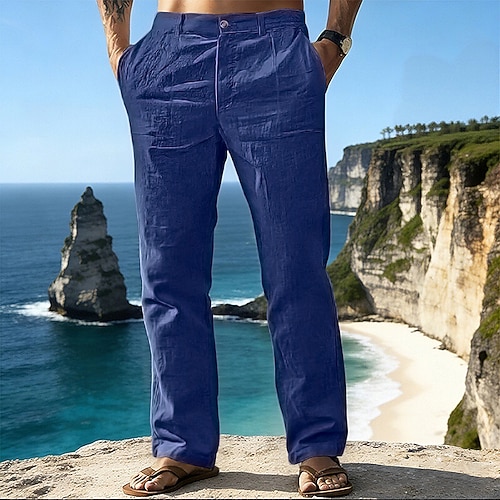 Per uomo Pantaloni di Lino Pantaloni Pantaloni Larghi Pantaloni da Spiaggia Coulisse Tasca Semplice Comodità Traspirante Lunghezza intera Quotidiano Vacanza Elegante Bianco Verde militare