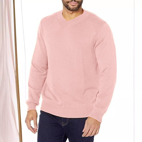 Per uomo Felpa Maglione A Coste Maglia Top Regolari Lavorato a maglia Slim Fit Semplice Scollo a V Maglieria Contemporaneo Casuale Abbigliamento quotidiano Abbigliamento Autunno Inverno Oro Giallo