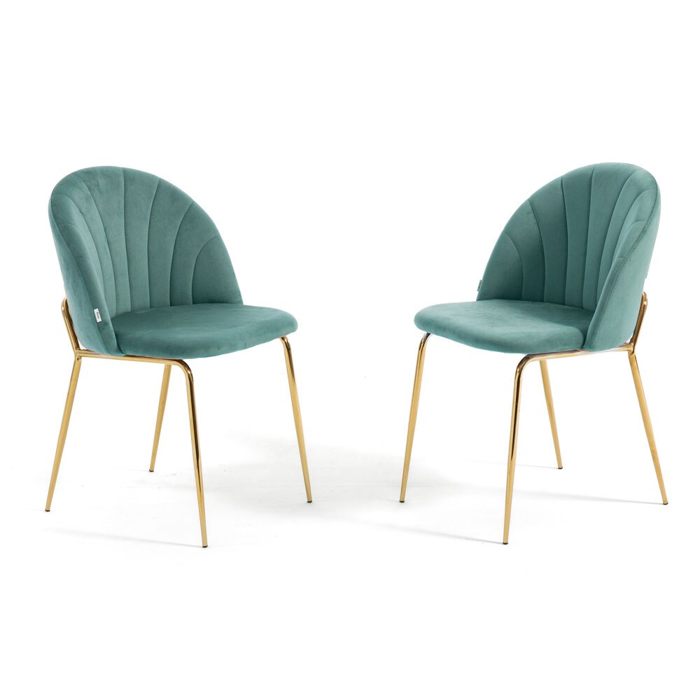 RATTATAN Set aus 2 gepolsterten Samtstühlen für den Innenbereich,Metallbeine,elegantes Design,für Küche,Esszimmer,Restaurant–Jadegrün/Gold–Sonia