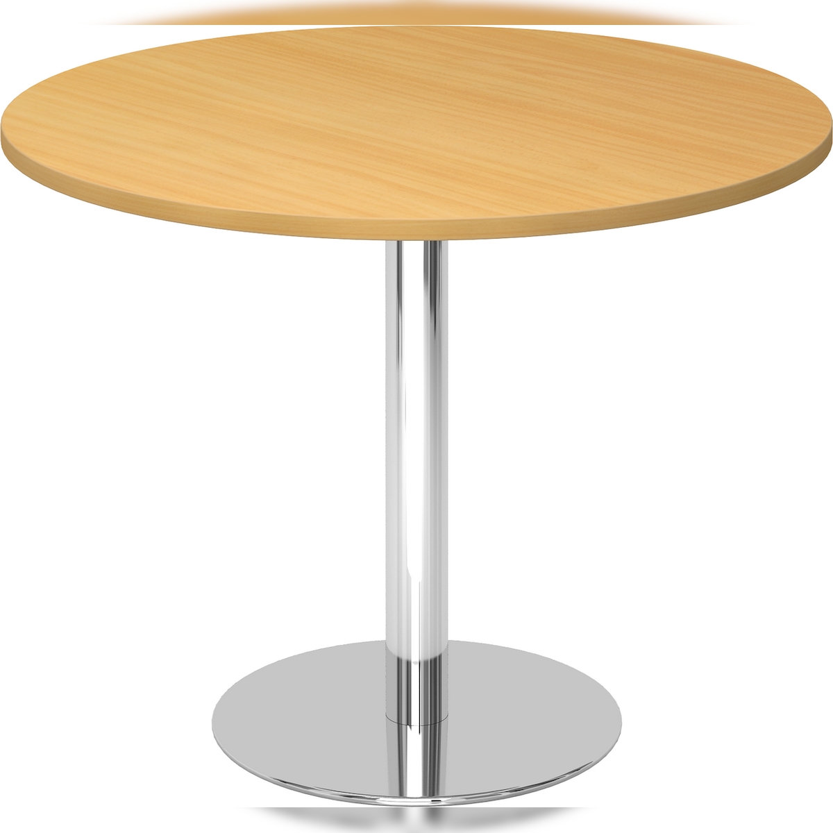 bümö Besprechungstisch, Esstisch klein, Tisch rund 100 cm - kleiner Esstisch Buche, Rundtisch Esstisch 2 Personen mit Holz-Platte, Säule aus Metall