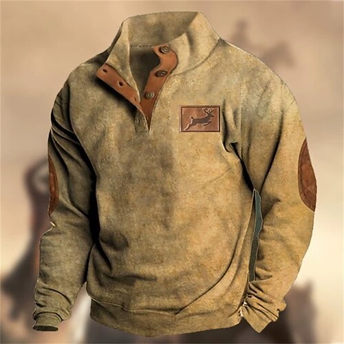 Per uomo Maglia Felpa con cappuccio Maglione Felpa con cappuccio abbottonata Felpa da caccia Cachi Grigio Colletto Mao Semplice Patchwork Sport Outdoor Casuale Quotidiano Streetwear Cool