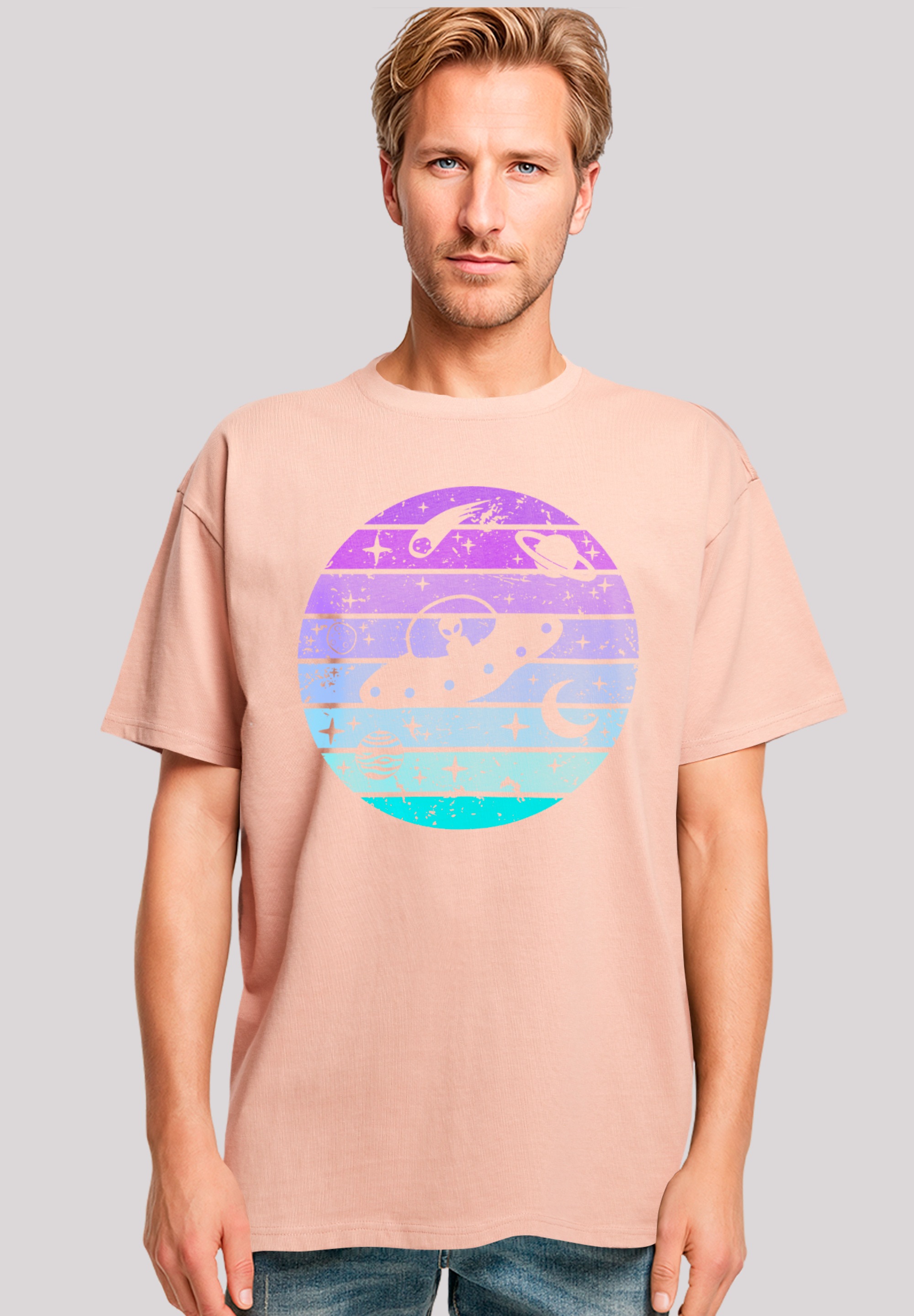 T-Shirt F4NT4STIC "Retro Alien Weltraum Sonnenuntergang", Damen, Gr. S, weiß (sandweiß), Obermaterial: 100% Baumwolle, regular fit, Rundhals, ohne Bündchen, Shirts T-Shirt, Premium Qualität