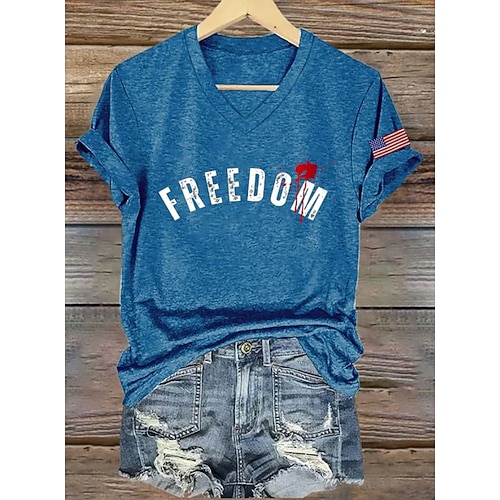 Maglietta Patriottica da Donna Bandiera Bandiera Nazionale Elegante Casual Rossa Bianca e Blu Maniche Corte Collo a V Regolare Top Giornaliero Stampa Nera Estate Primavera